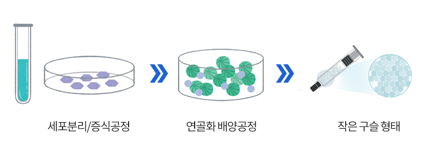 연골세포와 세포외기질을 포함하는 작은 구슬 형태로 연골조직화를 합니다.