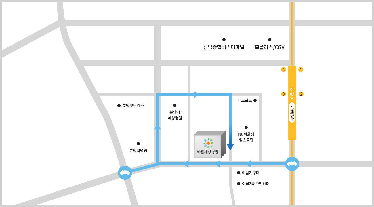 | 주소 | 13497 경기도 성남시 분당구 야탑로 75번길 5 바른세상병원 | ||